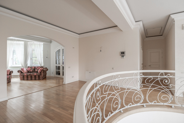 На второй этаж ведет удобная лестница с коваными перилами. Центральный холл и комната для отдыха с эркерными окнами. Одна мастер-спальня с ванной комнатой, две гостевые спальни, гостевая ванная комната с душевой, а также кабинет.